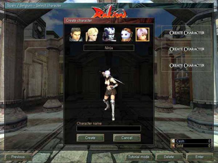 En Rakion podrás escoger entre cinco clases diferentes: Sword Man, Mage, Ninja, BlackSmith y Archer. Cada una de ellas tiene sus propias características de fuerza, armadura, etc. Según el personaje que escojas en Rakion tu estrategia deberá cambiar, siendo más aconsejable luchar cuerpo a cuerpo o bien a distancia.