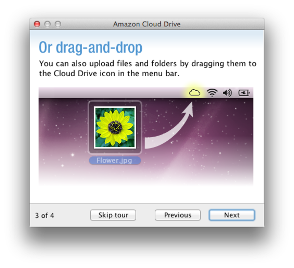 Con Amazon Cloud Drive podrás subir archivos a tu espacio Amazon de una forma rápida y sencilla. Por un lado, haciendo clic con el botón derecho y seleccionando la opción Upload to Cloud Drive. Y el segundo método, arrastrando los archivos al símbolo de Cloud Drive en la barra de menú.
