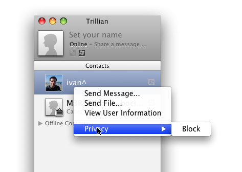 Trillian es un programa de mensajería instantánea muy popular en Windows. Ahora aterriza en Mac OS X con un aspecto similar a iChat y Adium y con soporte para las redes más usadas, como ICQ, Yahoo!, MSN Live e incluso Facebook, Twitter y MySpace.