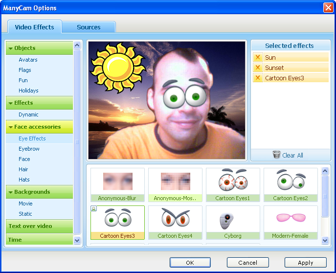 Básicamente, ManyCam es un programa con el que puedes añadir divertidos y peculiares efectos especiales a las escenas o imágenes que capturas con tu cámara web.