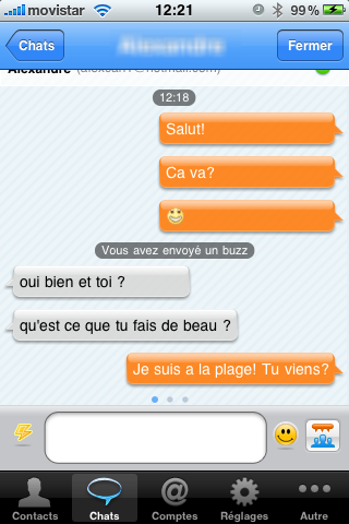 eBuddy Mobile Messenger contiene sonidos, emoticonos, avatares y todos los recursos necesarios para chatear. Además dispone de una interfaz de lo más simple que no tardarás en controlar y que destaca por el uso de pestañas.