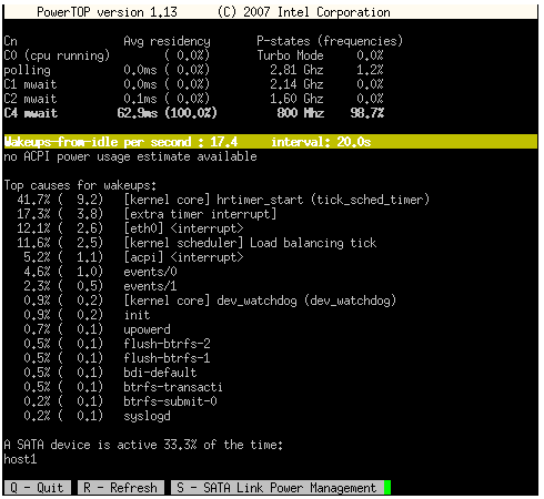 PowerTOP pretende poner solución a este problema analizando los programas en funcionamiento y diciéndote cuáles consumen más CPU cuando el PC está parado.