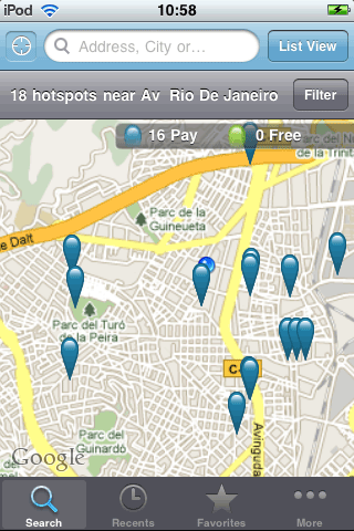 La mayor ventaja de Wi-Fi Finder es que funciona incluso sin conexión a Internet, gracias a que previamente descarga la lista de hotspots más cercanos y las sitúa en un mapa. Irónicamente, necesitas tener conexión a Internet la primera vez que entras al programa para descargar dicha lista.
