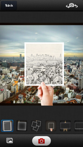 PIP Camera dispone de dos modos basados en sus filtros: uno los aplica en toda la foto y otro solo en la foto dentro de la principal. Para cada foto puede elegir si quieres tomarla con la cámara o elegirla con tu biblioteca.