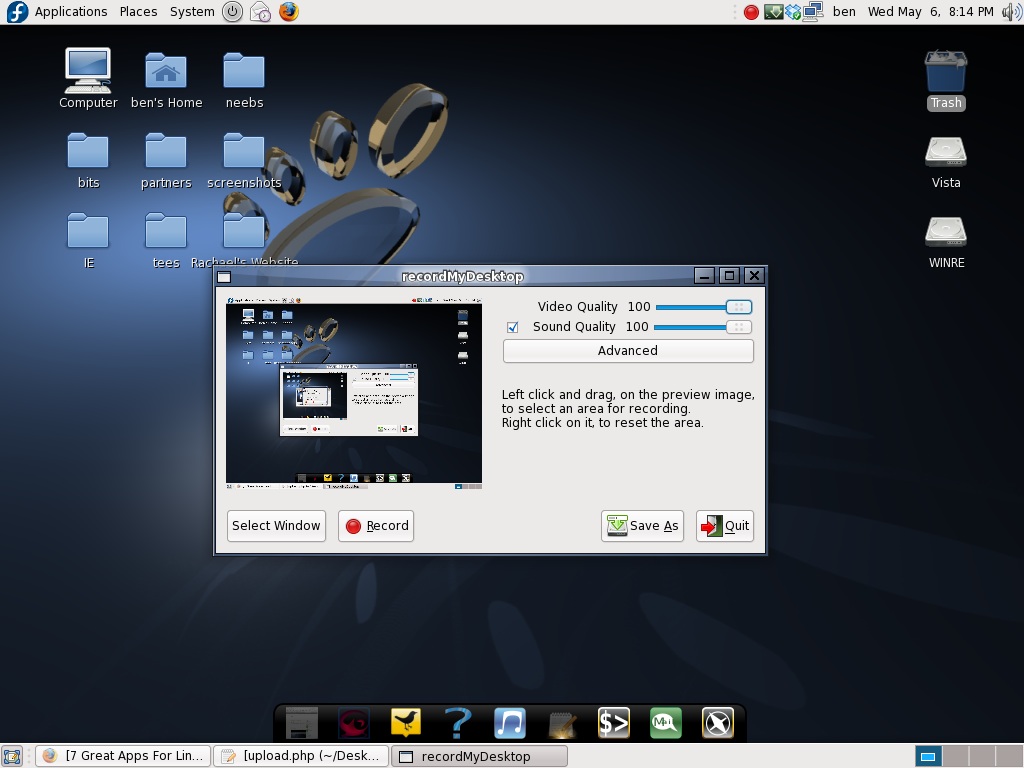 recordMyDesktop es una sencilla aplicación con la que podrás realizar capturas de vídeo de todo lo que ocurre en tu pantalla, de vídeo pero también de audio, con un control preciso del proceso.