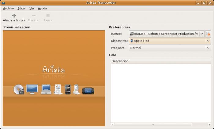 Arista Transcoder es un conversor de vídeo muy fácil de usar y que cuenta con perfiles preconfigurados para dispositivos móviles y videoconsolas.