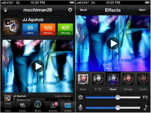 Viddy graba vídeos, los edita y permite compartirlos en su propia red social, al más puro estilo Instagram.