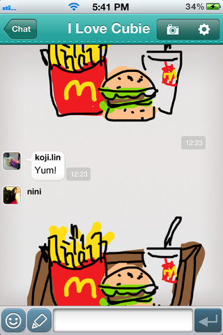 Pero Cubie Messenger no solo envía los clásicos mensajes de texto con emoticonos, sino que también permite crear dibujos a mano alzada, lo que supone toda una ventaja a la hora de comunicar cierto tipo de información imposible de plasmar con letras.