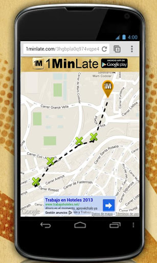 Automáticamente, 1MinLate generará un enlace que compartirás con la persona que te espera. Al hacer clic en el enlace, podrá ver donde te encuentras en cada momento. 1MinLate actualiza tu posición cada minuto.
