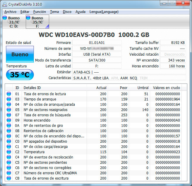 Por contra, CrystalDiskInfo no da ninguna ayuda para entender en qué consisten algunos de los datos que ofrece, por lo que los usuarios no expertos sólo podrán usar la ficha técnica del disco duro, el estado de salud, la temperatura y los gráficos.