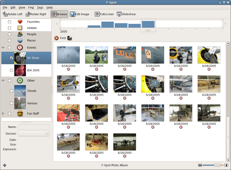 Y al igual que en el resto de visores, con F-Spot las fotografías pueden verse, además de agrupadas o individualmente, a pantalla completa y en pase de diapositivas.
