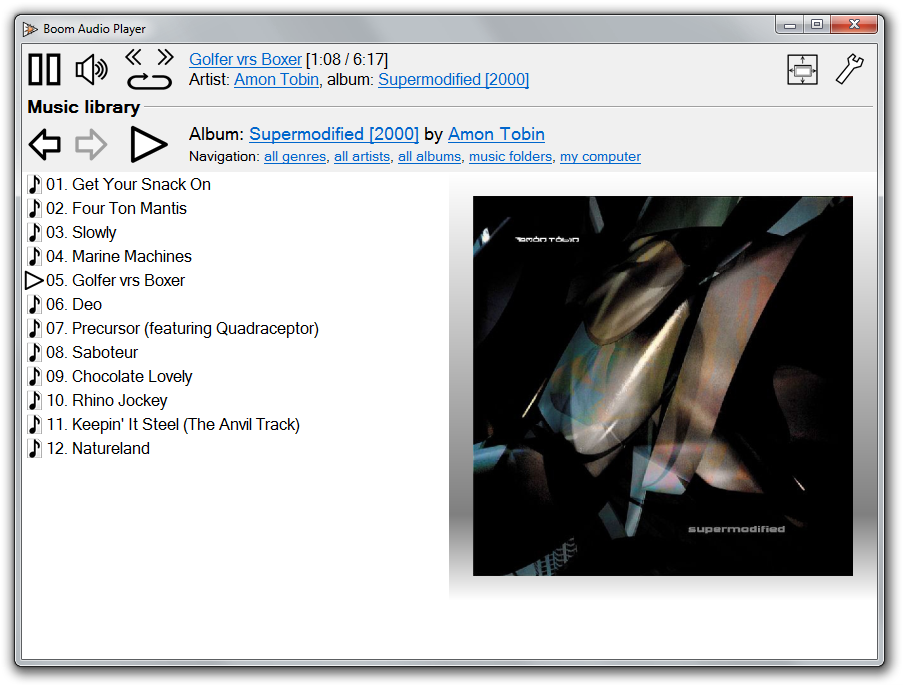 Boom es una bala: en dos megabytes de ejecutable tiene todo lo necesario para abrir canciones en cualquier formato y reproducirlas con alta calidad. Apenas hay opciones porque apenas le hacen falta.