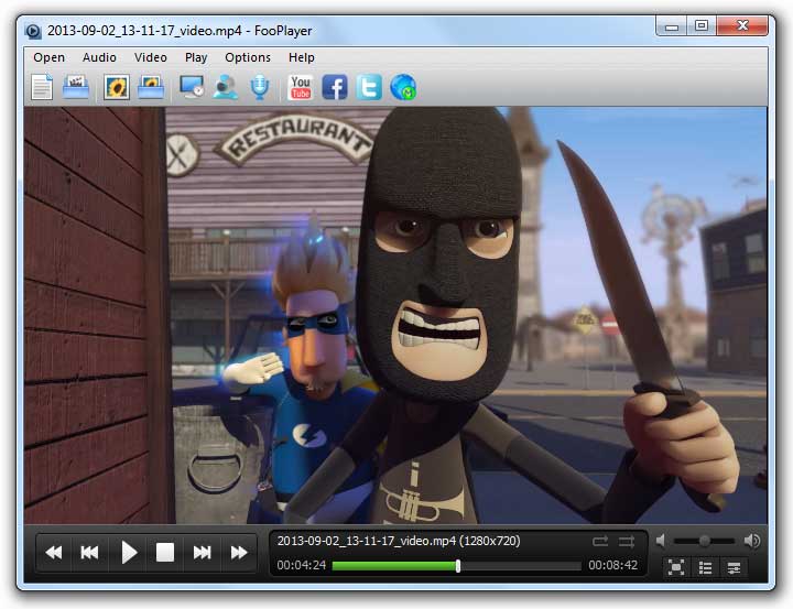 Fooplayer es un reproductor de vídeo con todas las funciones habituales (gestión de subtítulos, varios formatos de imagen, ecualizador…). Fooplayer presenta una característica destacable y es que permite grabar todo lo que se ve en pantalla. Se trata de una función interesante y que se acompaña de otras innovaciones como la integración con redes sociales: podrás compartir tu actividad en Twitter, Facebook y YouTube. Fooplayer es gratis con publicidad aunque puedes eliminar los anuncios previo pago.