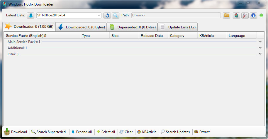 Con Windows Hotfix Downloader podrás descargar las actualizaciones que tú elijas para Microsoft Windows 7, 8 y 8.1 (32 y 64 bits) y para Office 2010 y 2013, incluyendo los Service Packs. Además, sirve para realizar copias de seguridad de los controladores de tu PC. Windows Hotfix Downloader es muy configurable e incluye funciones como crear un USB ejecutable para instalar Windows 7, 8 y 8.1 e integrar las actualizaciones de Office en una imagen ISO personalizada.