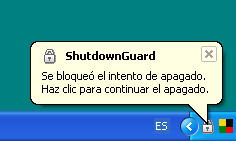 ShutdownGuard, que permanece en la barra de tareas, bloquea estos reinicios durante el tiempo que queramos. Eso incluye las órdenes de apagado o reinicio que iniciemos manualmente. Su icono notificará cualquier intento de cierre de sesión, parándolo en el acto.