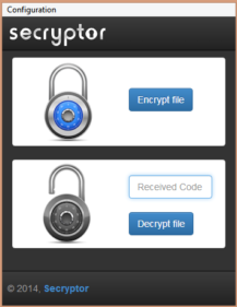 Secryptor protege con contraseña tus archivos personales. Haz clic en Entrypt file, selecciona el archivo que quieres proteger y elige una clave de acceso. Más fácil, imposible.