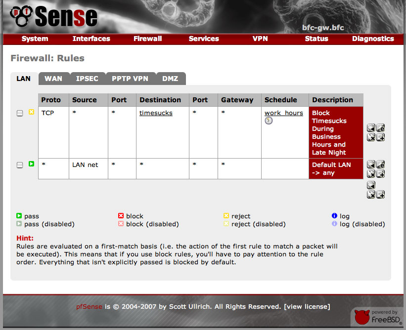 pfSense, una distribución basada en FreeBSD para actuar como Firewall y Router. Es de código abierto y puede ser instalada en multitud de ordenadores.