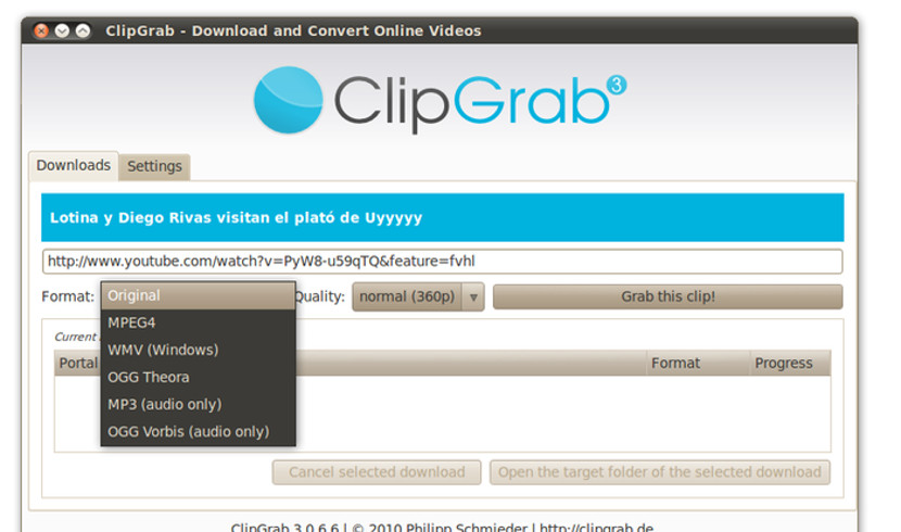 Clipgrab es una opción gratuita que curiosamente no sólo se puede instalar en Gnu/Linux sino que también tiene una versión para Windows. Aún así, la mejor opción, como siempre, es usar Gnu/Linux.